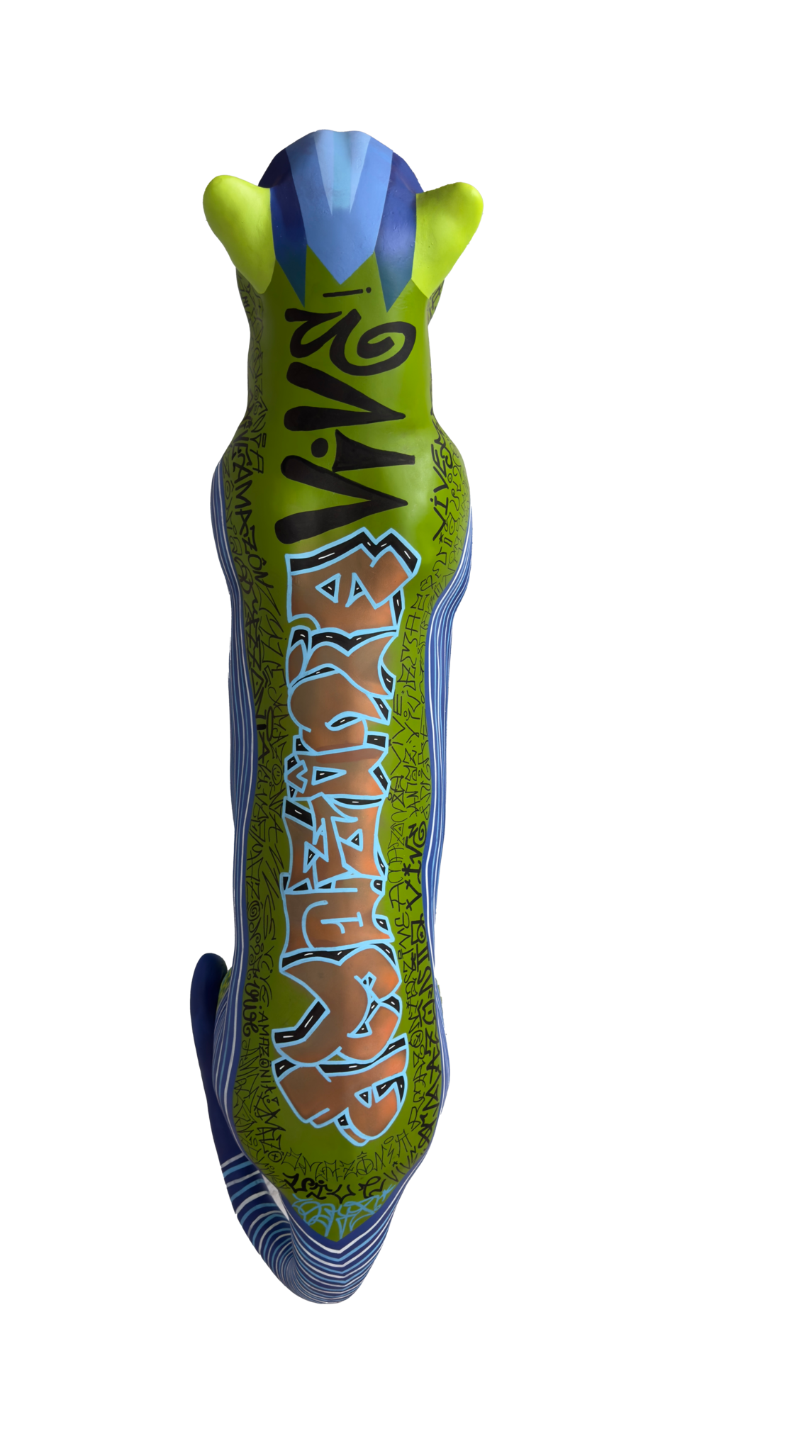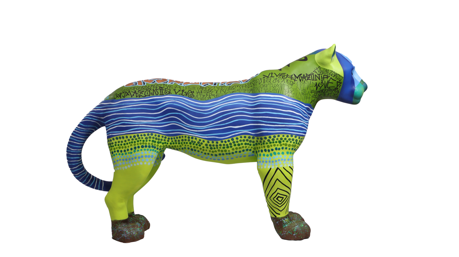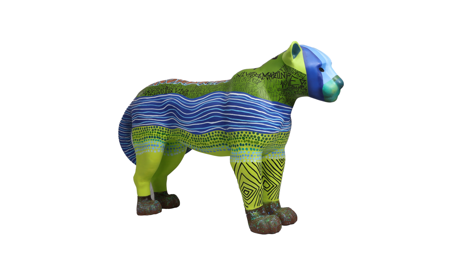 A inspiração da obra do Projeto, seria a promoção de uma linguagem sobre o contexto amazônico atuais e reais, desmoldando a palavra “Amazônia” como algo “genérico”, onde a Onça levará levará "tags" (tipo de escrita do graffiti) com a frase "AMAZÔNIA VIVE". A palavra em sua costa reverbera essa sobrevivência dos Agroecossistemas pelos animais, pois a realidade das “amazônias” só é sentida por quem vive e configura uma engrenagem que é pra além de um território geográfico. Além disso, as grafias e texturas diferentes, indicam diversidades e ambientes distintos, porém com as mesmas cores para que mantenha homogeneidade de sobrevivências que resistem apesar das bagunças e interferências externas na vida dos povos e comunidades tradicionais, que são representados por "pingos" de cabeça para baixo.