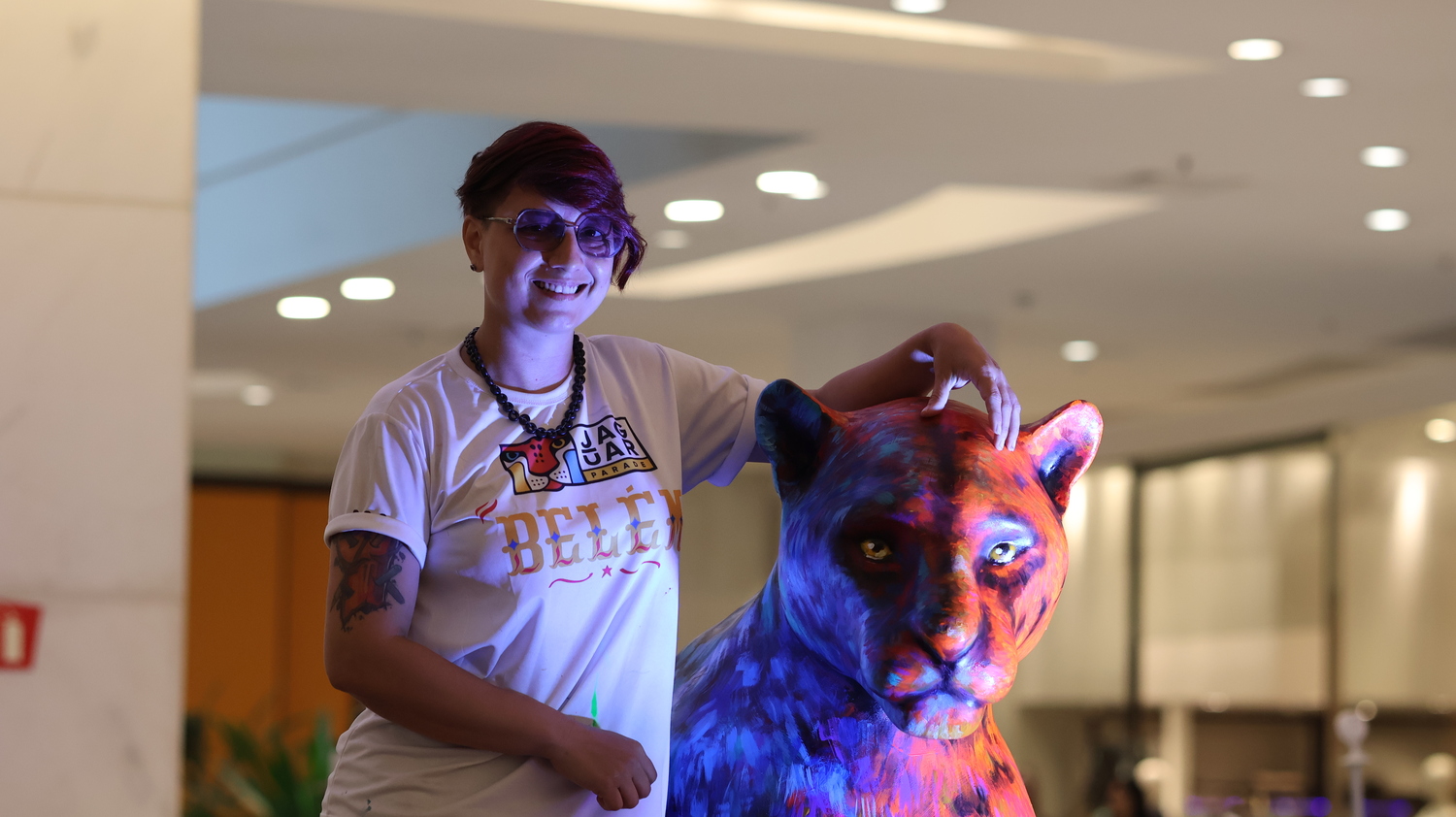 Este projeto artístico nasce da conexão profunda com a fauna e a flora da Amazônia e do Brasil, trazendo o Jaguar como símbolo de força, mistério e equilíbrio na natureza. Inspirado nas cores vibrantes do nosso território, a obra explora o vermelho, representando a energia e a resistência da floresta; o azul, que reflete os rios e a imensidão do céu; o amarelo, que carrega o calor do sol e a vitalidade da vida; e o verde, essência da mata, símbolo da renovação e da biodiversidade.