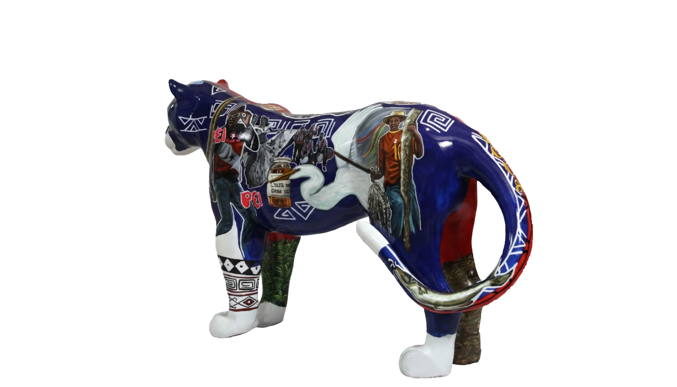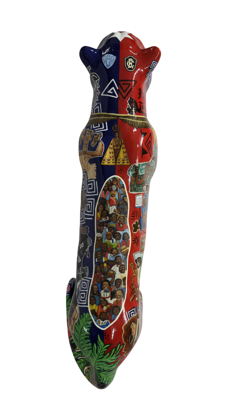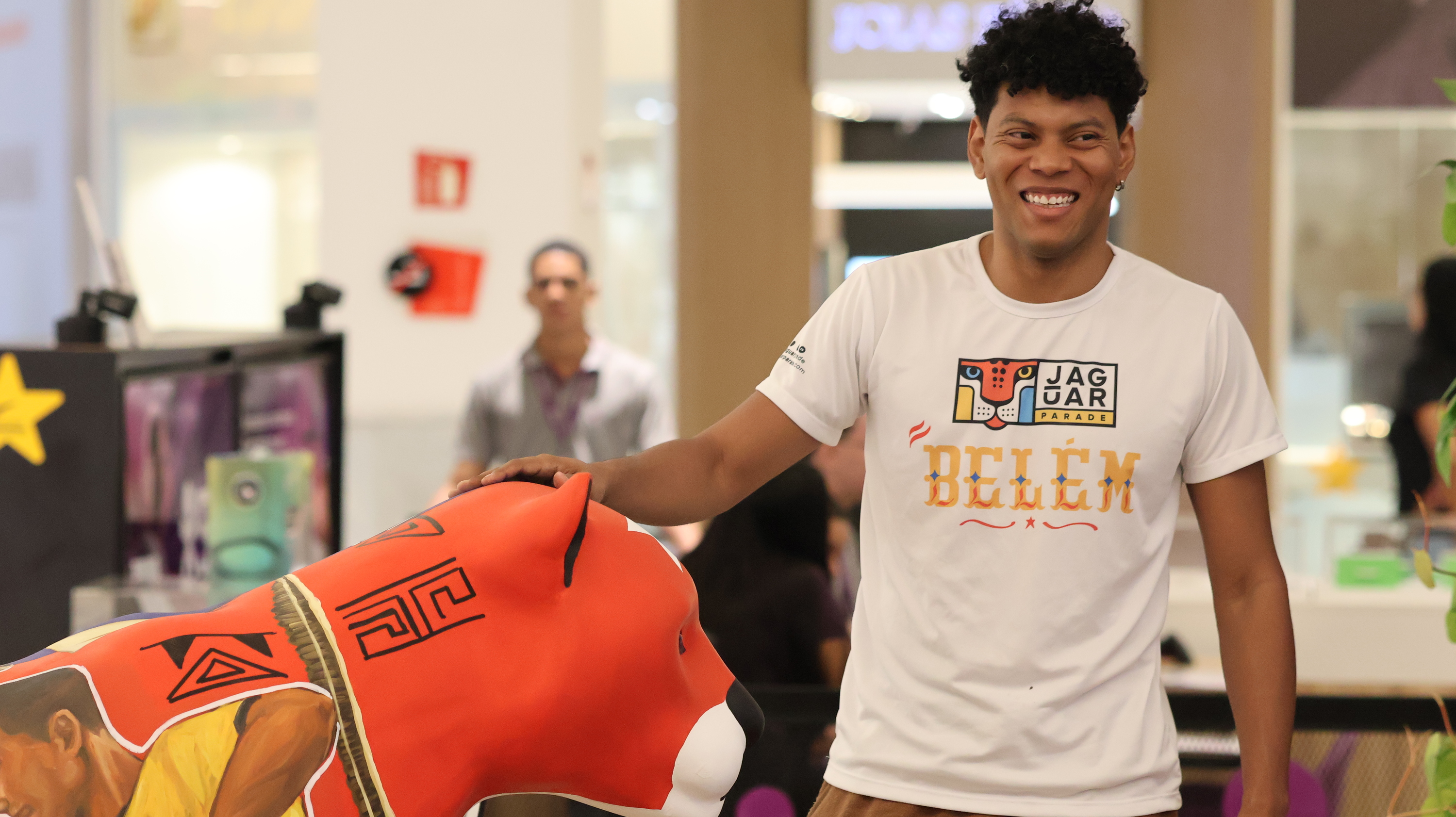 Îagûara paraense do tupi onça, é um projeto de construção poética baseado nas vivencias da capital onde moro e do interior onde vivi, as cores remetem tanto a bandeira do Pará, quanto a bandeira de Abaetetuba, minha cidade natal, além de retratar cenas de danças típicas da região como o carimbó e o tecno melody assim como a brega, etc. Exemplos tão comuns em nossa região, que moldam nossa cultura e é também representado no trabalhador colhendo o açaí, em nossa preciosa Amazônia, mas também essa proposta desagua na fé do círio que move e une o estado. A obra tenta emular grafismos marajoaras resgatando elementos das culturas indígenas como o cocar no pescoço da Iaguara, e homenageia cenas presentes nas periferias e interiores assim como no coração da capital paraense, onde existe a maior feira aberta da américa latina o mercado do Ver-o-Peso.