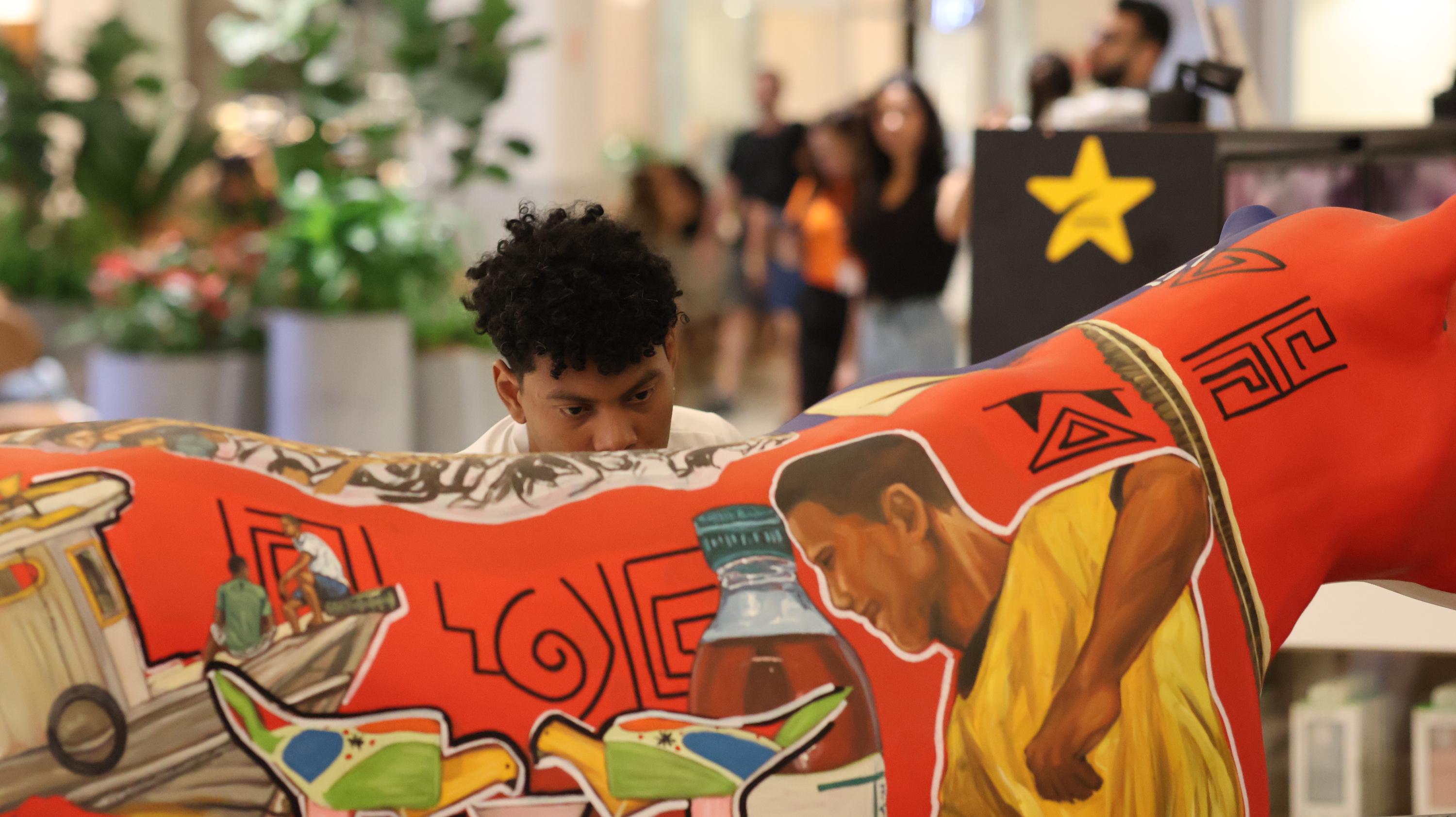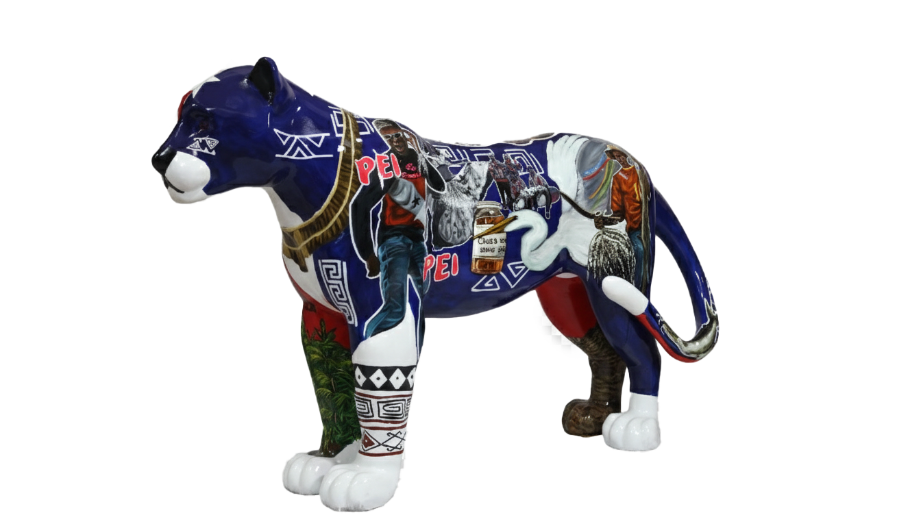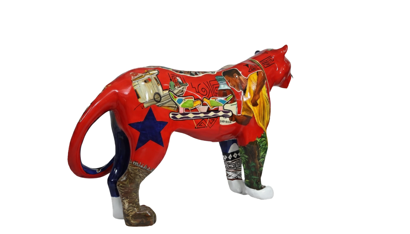 Îagûara paraense do tupi onça, é um projeto de construção poética baseado nas vivencias da capital onde moro e do interior onde vivi, as cores remetem tanto a bandeira do Pará, quanto a bandeira de Abaetetuba, minha cidade natal, além de retratar cenas de danças típicas da região como o carimbó e o tecno melody assim como a brega, etc. Exemplos tão comuns em nossa região, que moldam nossa cultura e é também representado no trabalhador colhendo o açaí, em nossa preciosa Amazônia, mas também essa proposta desagua na fé do círio que move e une o estado. A obra tenta emular grafismos marajoaras resgatando elementos das culturas indígenas como o cocar no pescoço da Iaguara, e homenageia cenas presentes nas periferias e interiores assim como no coração da capital paraense, onde existe a maior feira aberta da américa latina o mercado do Ver-o-Peso.