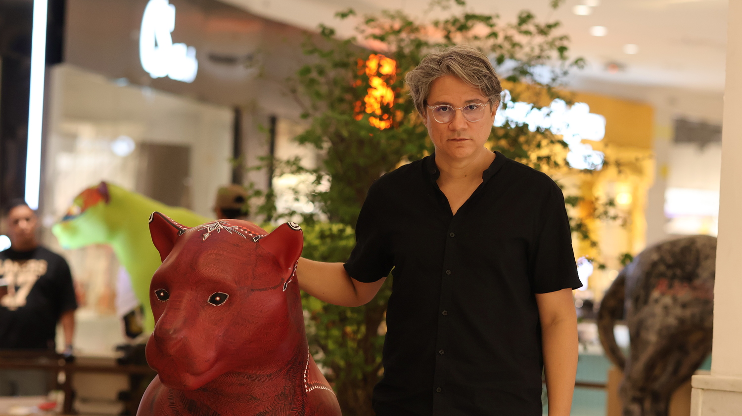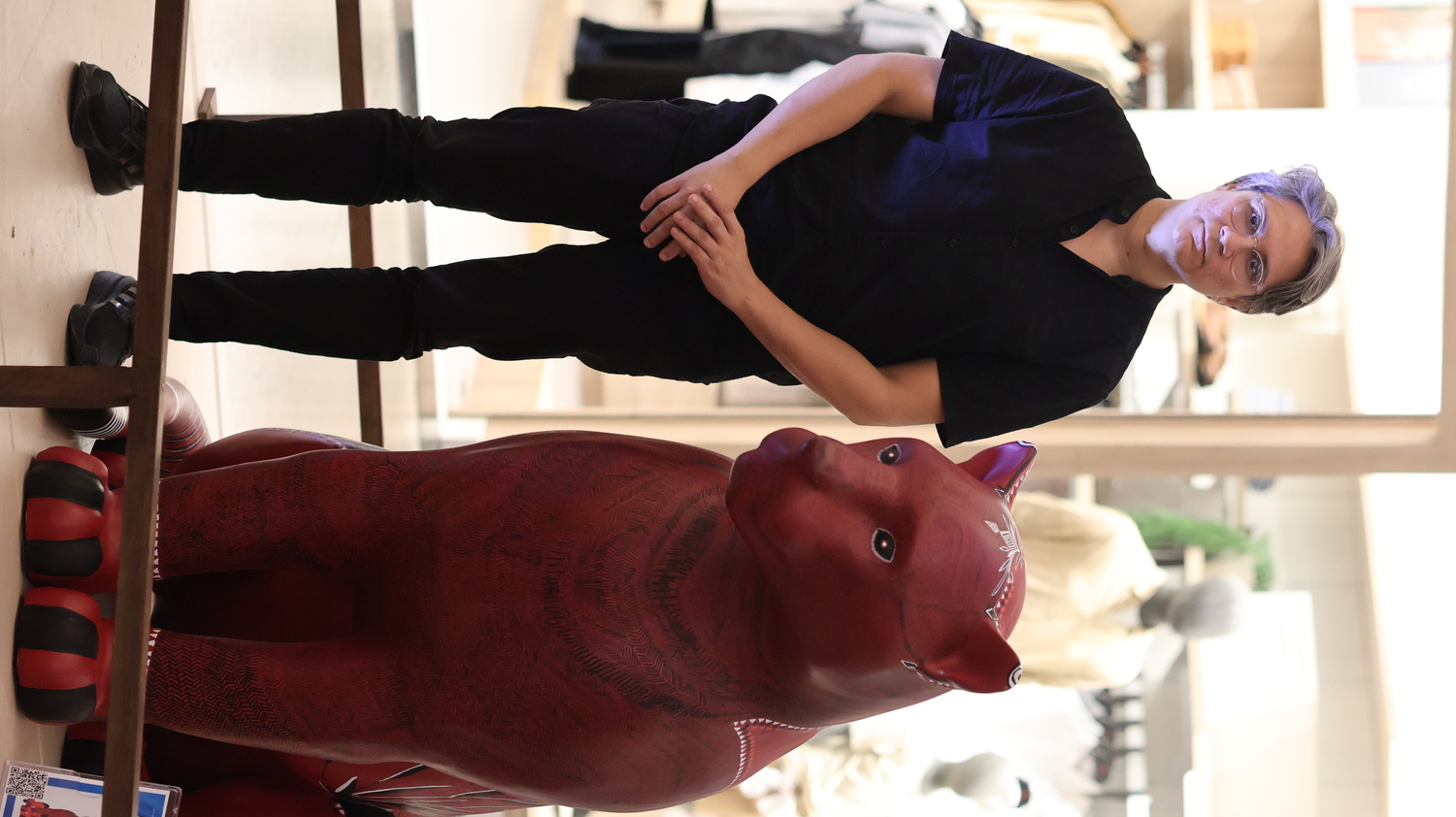 Estipe é uma escultura que se ergue como caule, como corpo que sustenta camadas invisíveis de tempo. O jaguar aqui é mais do que animal — é território orgânico. Seu corpo é tomado por milhares de linhas desenhadas à mão, como se fossem fibras, veios, rios ou inscrições ancestrais da terra.