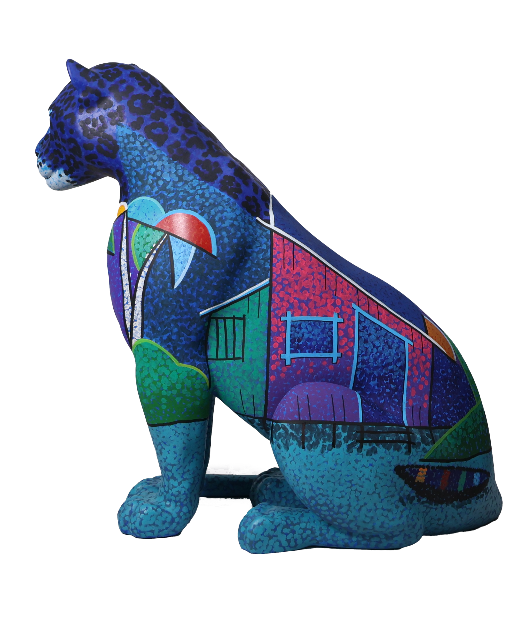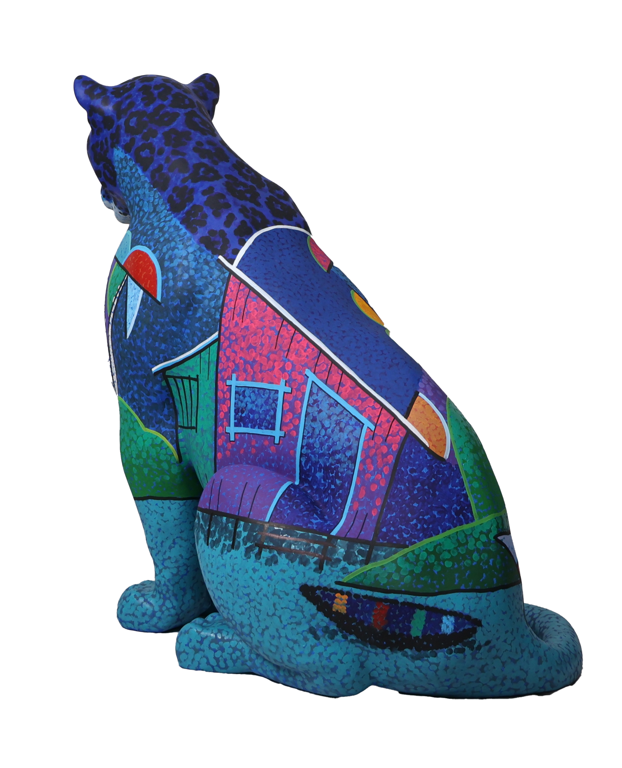 A obra propõe um olhar sobre a Amazônia como um organismo vivo, diverso e interconectado — um mosaico de origens culturais, naturais e espirituais. Cada folha, traço e forma aplicada no corpo da onça é um fragmento de pertencimento, resistência e beleza. A paleta cromática remete à fertilidade da terra, ao ouro das riquezas naturais e ao azul das águas que sustentam a vida.
