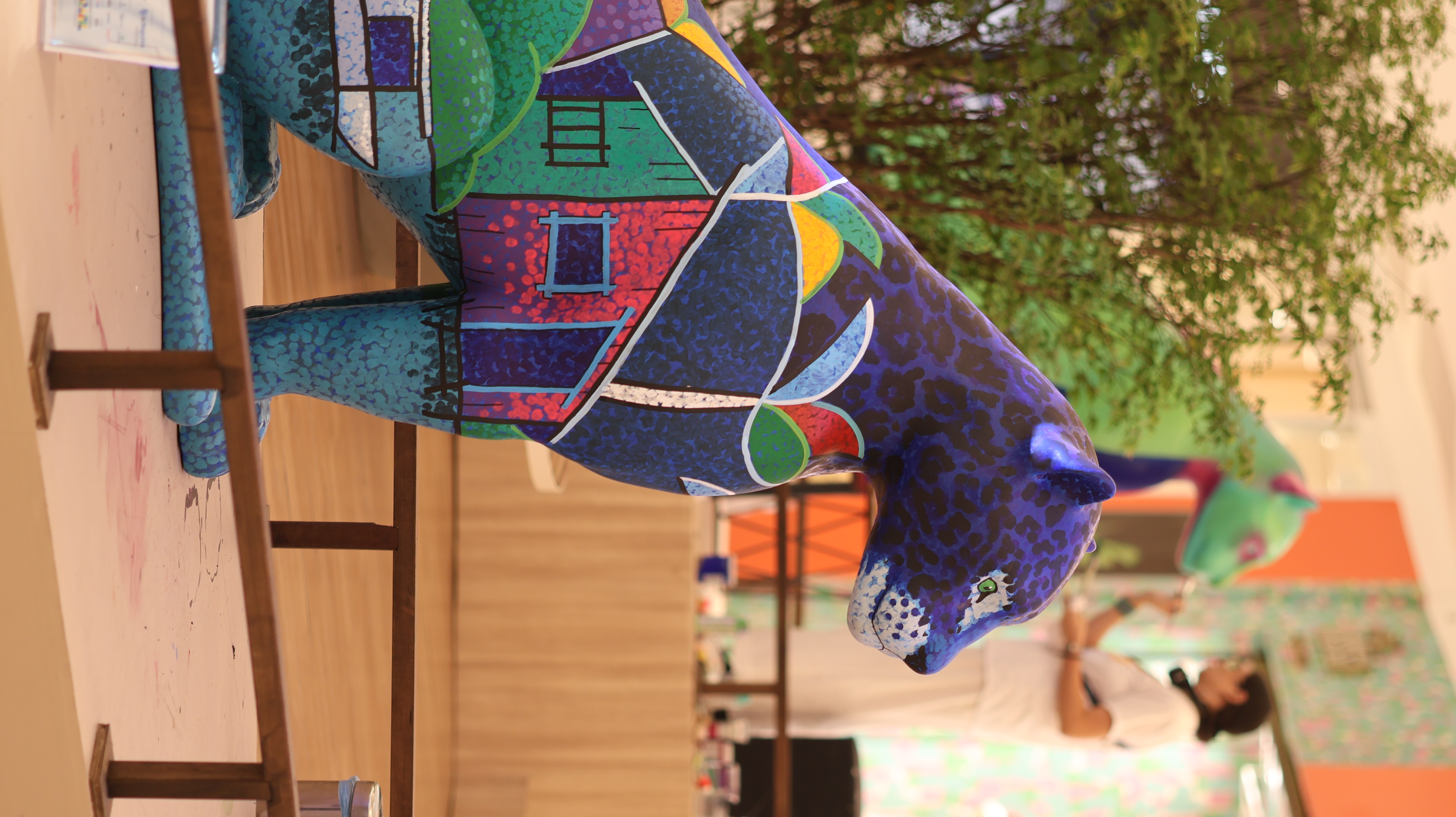 "Mosaico das Origens" representa a onça como guardiã ancestral dos ecossistemas amazônicos, onde sua pele torna-se um território simbólico, coberto por elementos botânicos, padrões ornamentais e texturas que remetem à flora, à arte marajoara e à memória dos povos da floresta.