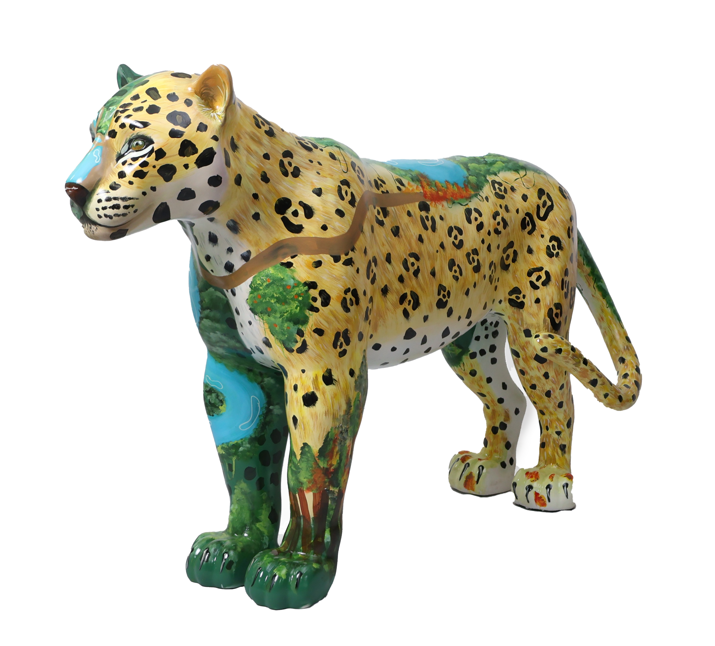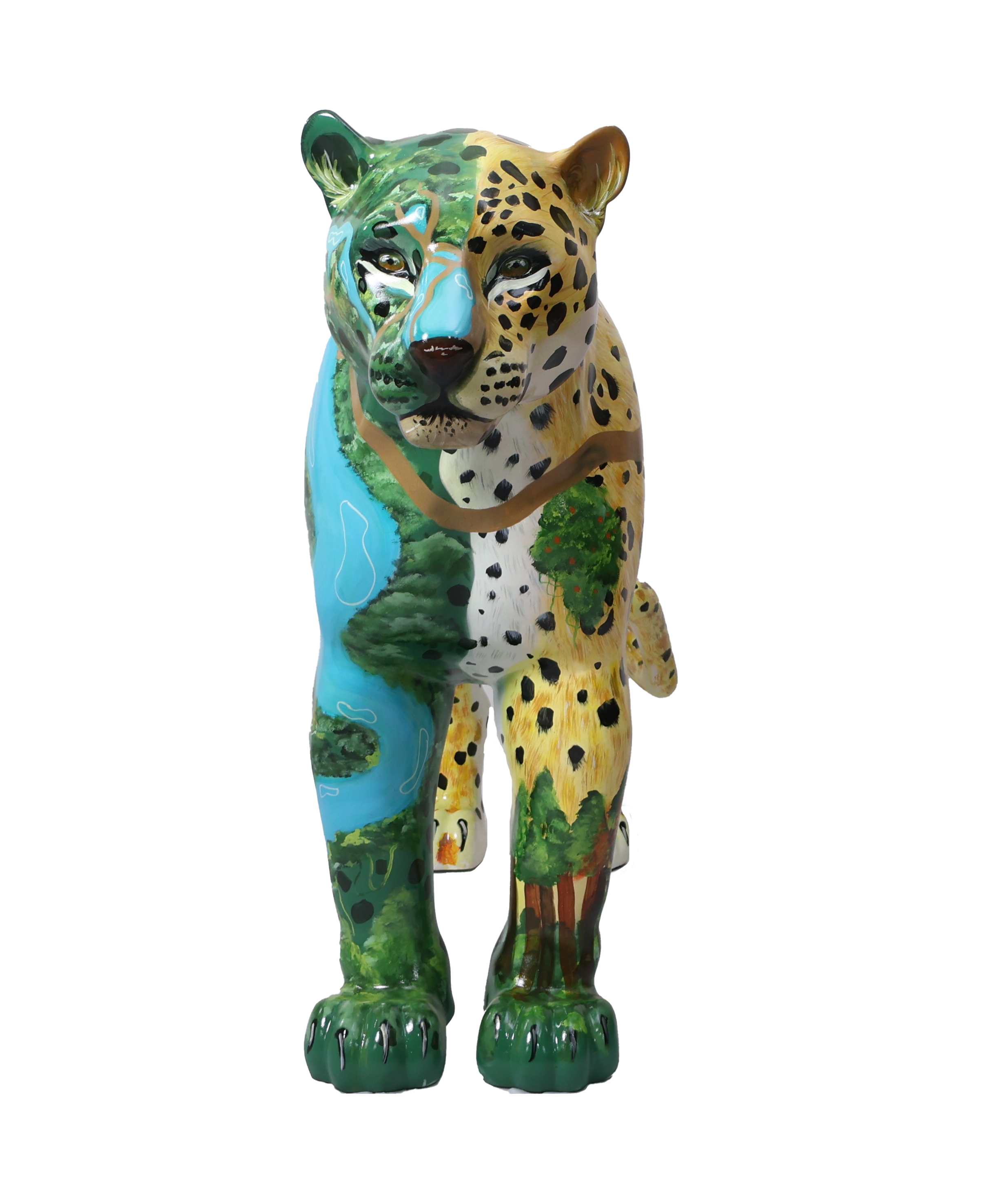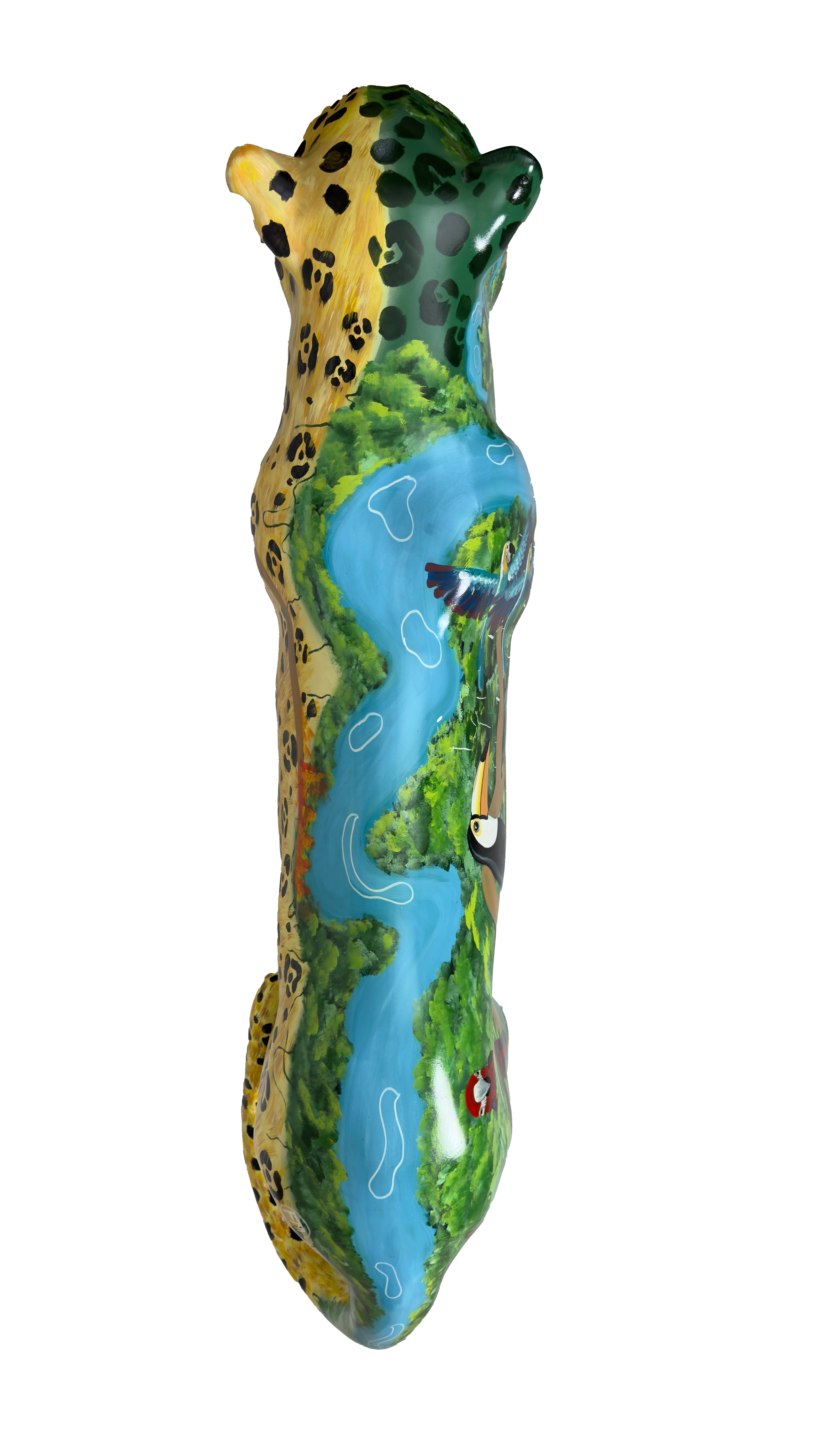 Assim, cada mancha, cada linha pintada, reafirma que o corpo da onça e o corpo da floresta são indissociáveis. Quando o território amazônico é ferido, a onça também é atingida; quando a onça é caçada, o território inteiro é ameaçado. A obra, portanto, é um chamado: enxergar na pele do jaguar a própria Amazônia — sagrada, ferida, mas ainda viva e resistente.