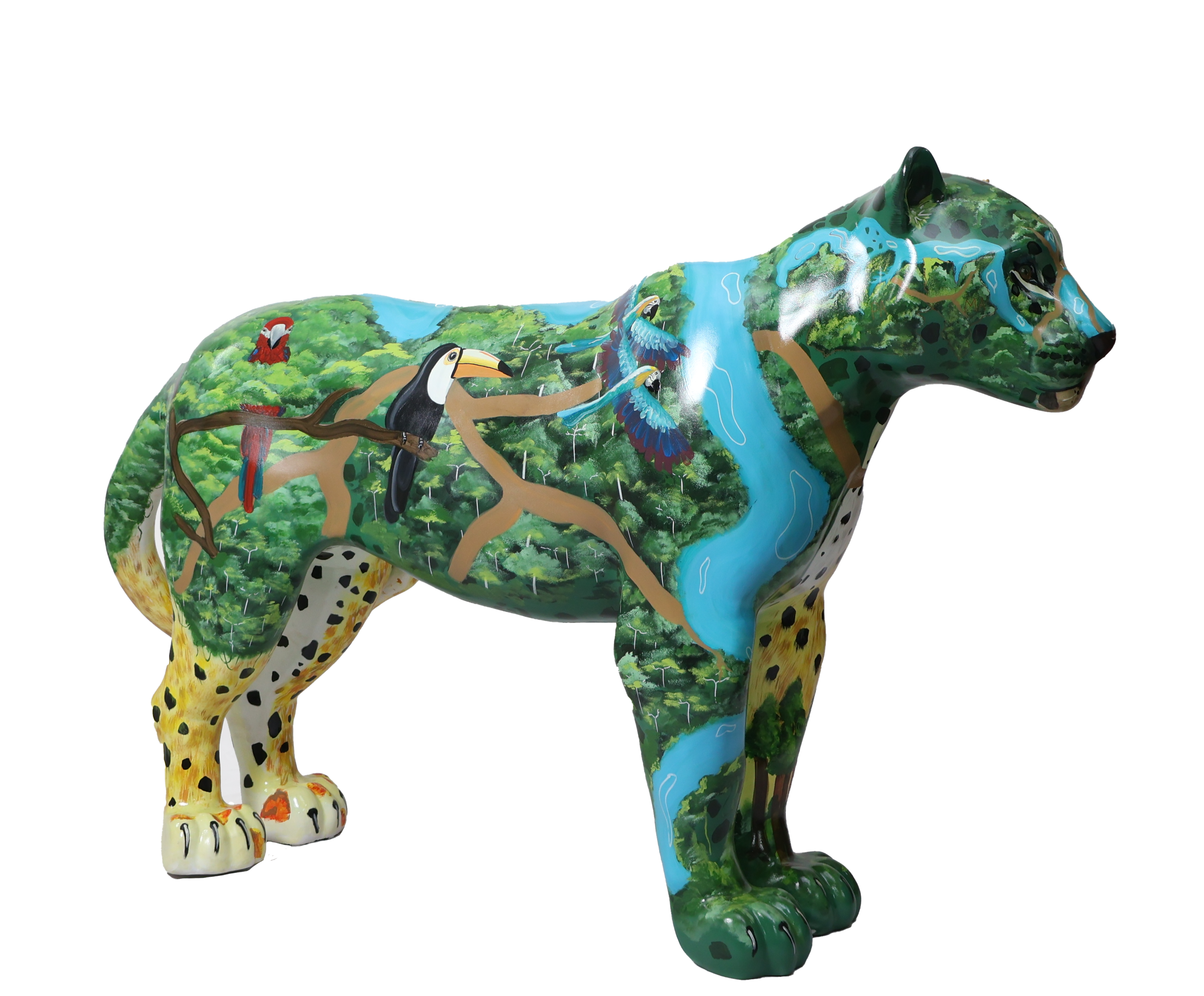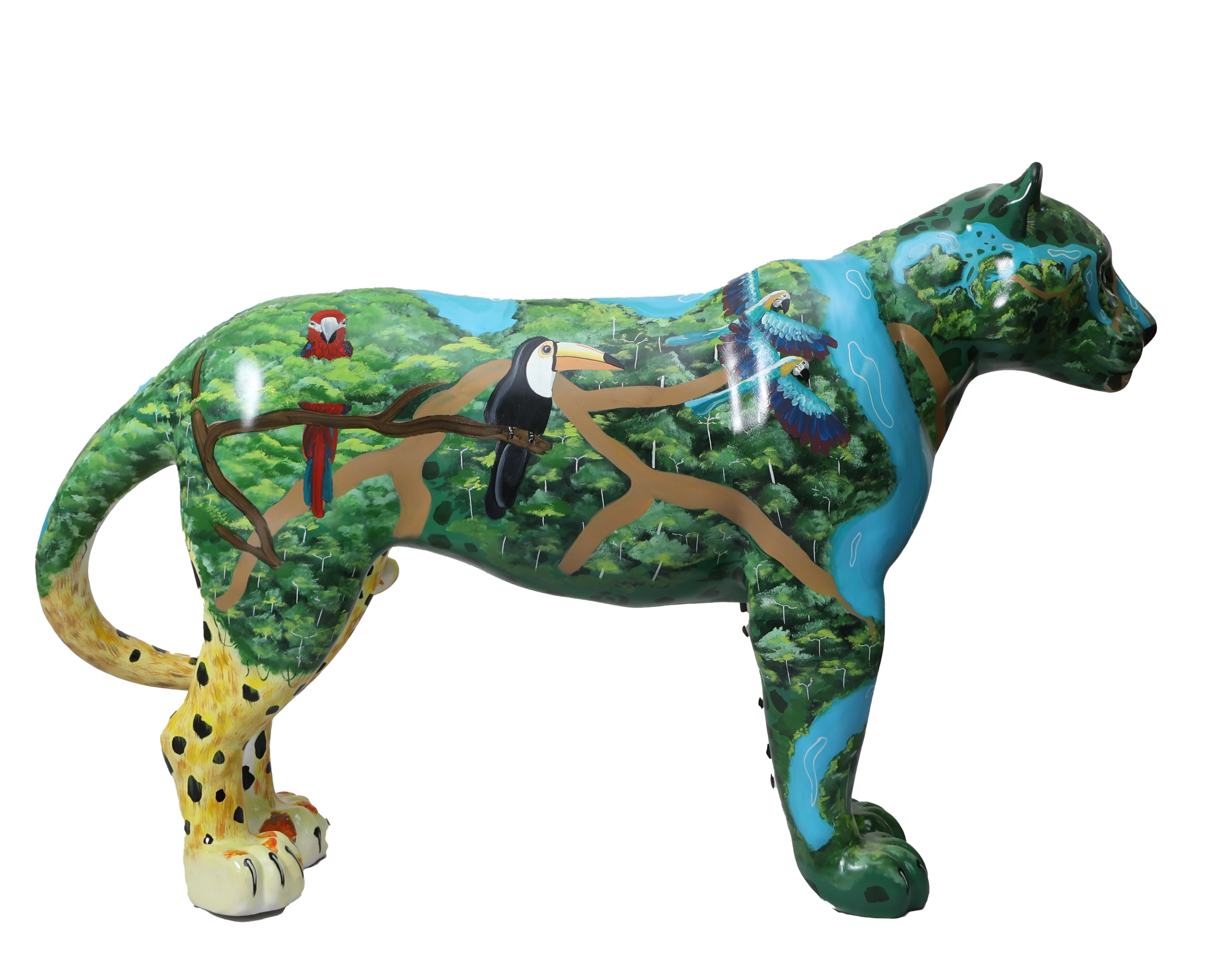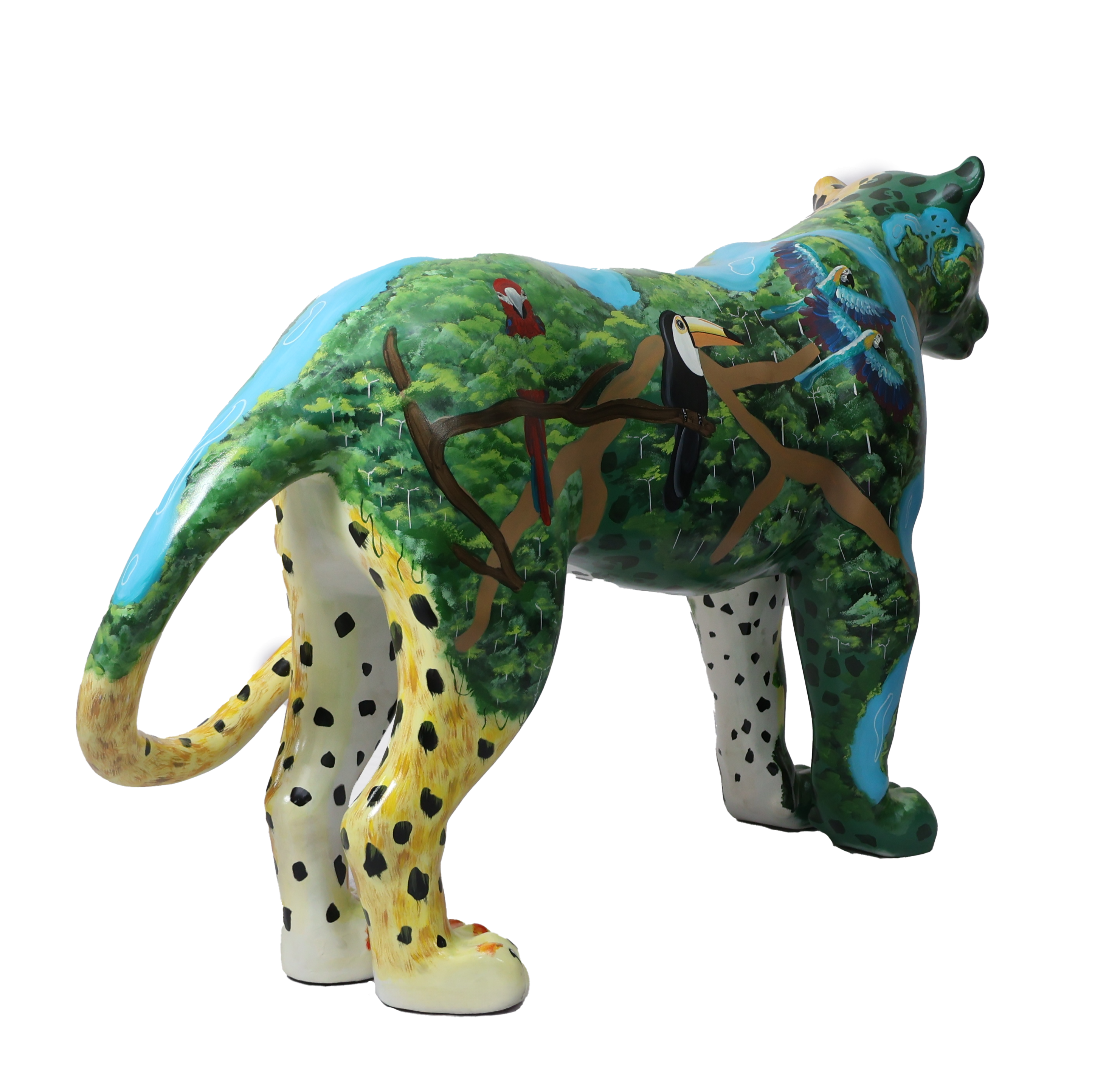 Assim, cada mancha, cada linha pintada, reafirma que o corpo da onça e o corpo da floresta são indissociáveis. Quando o território amazônico é ferido, a onça também é atingida; quando a onça é caçada, o território inteiro é ameaçado. A obra, portanto, é um chamado: enxergar na pele do jaguar a própria Amazônia — sagrada, ferida, mas ainda viva e resistente.