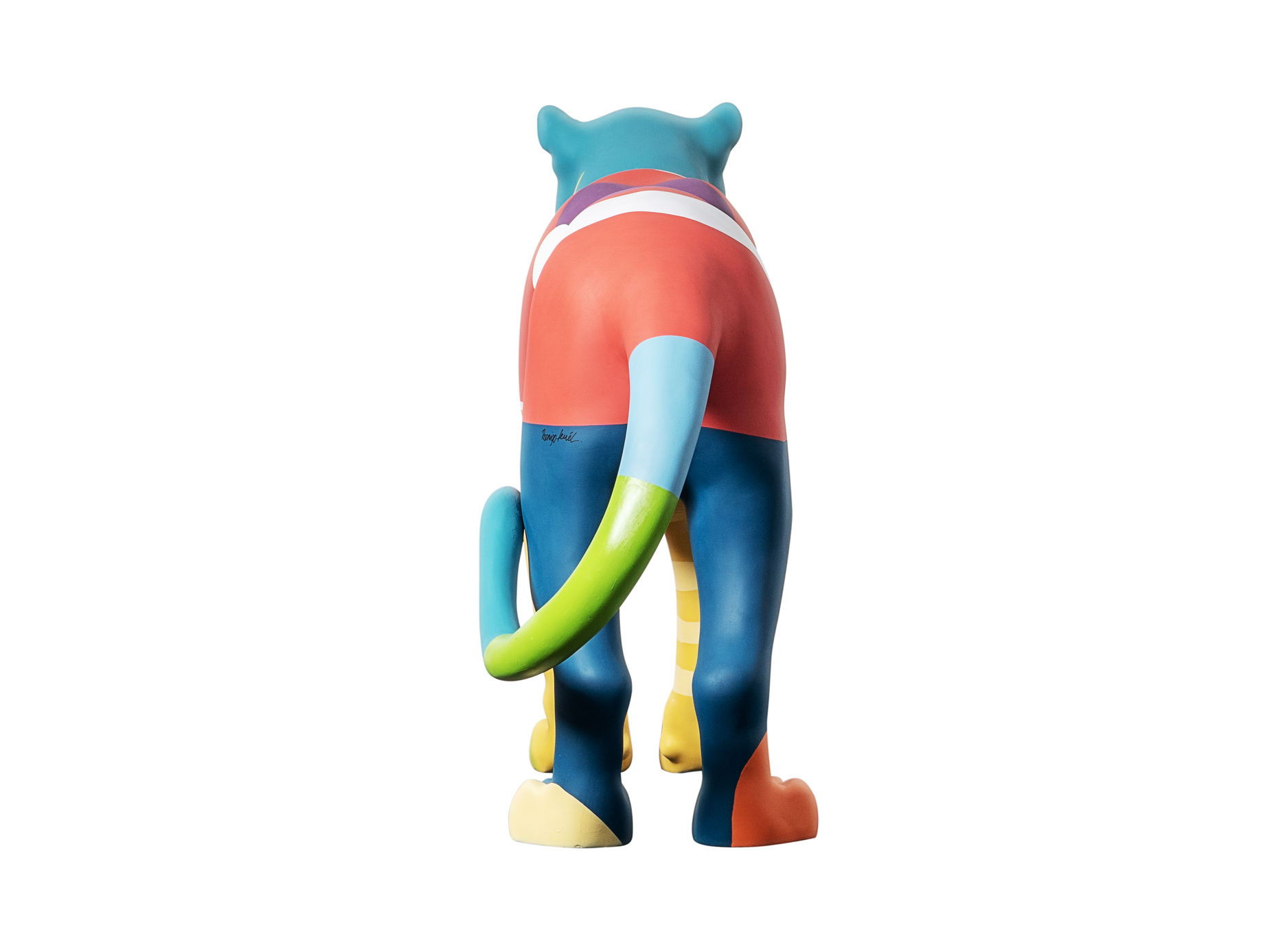 O título da minha peça é "Transbordo", que também é o nome da série na qual venho trabalhando nos últimos meses. Nessa série, tenho explorado a ideia de uma maior liberdade e leveza no processo criativo, buscando trazer para a obra uma relevância orgânica que complemente as formas geométricas que caracterizam meu trabalho há anos. Acredito que essa abordagem permite que a arte se desenvolva de maneira mais fluida e autêntica, refletindo minha essência e minhas ideias de forma mais genuína.